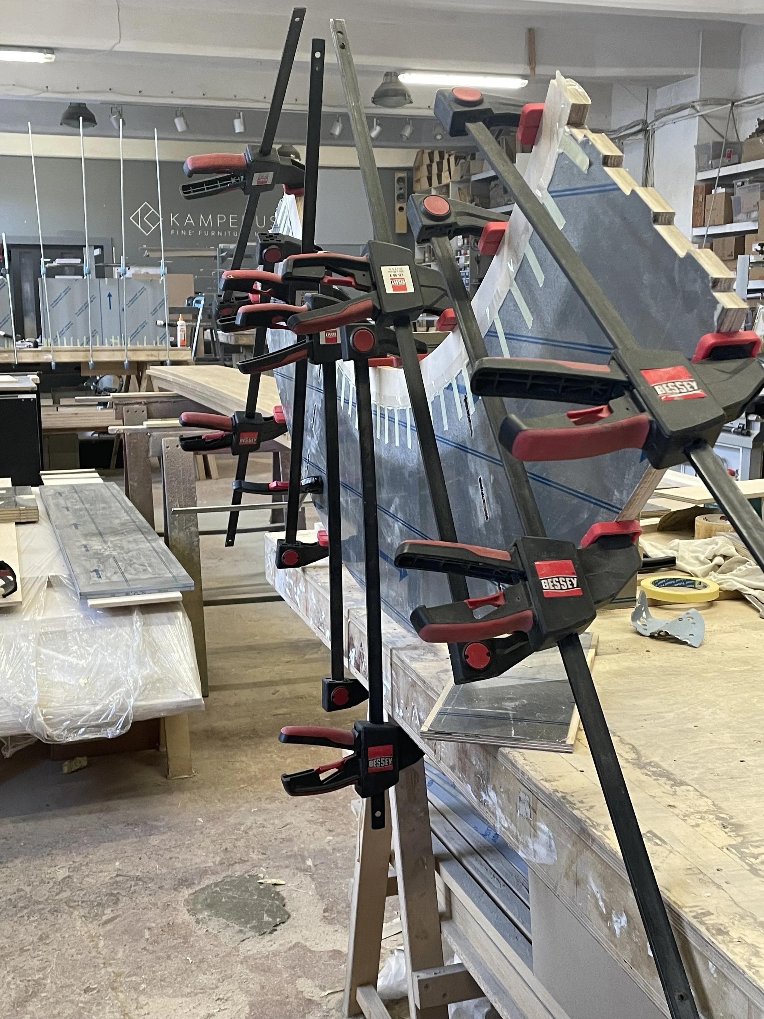 Bak hver skapelse står det stille fokuset til erfarne hender og gjennomtenkte sinn. I disse øyeblikkene fra verkstedet ser man ikke bare møbler i produksjon, men en dypere dedikasjon til håndverk og omtanke. Det ligger i rytmen av bevegelse, tålmodigheten i prosessen og jakten på kvalitet at noe tidløst tar form.
